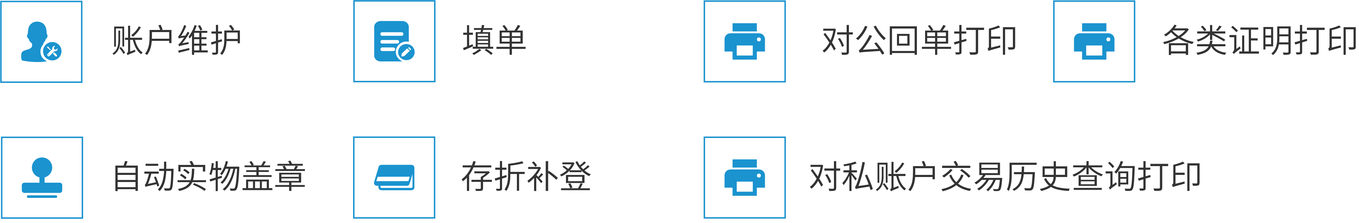 支持多种幅面的回单打印;存折补登;对私凭证打印盖章;灵活部署。