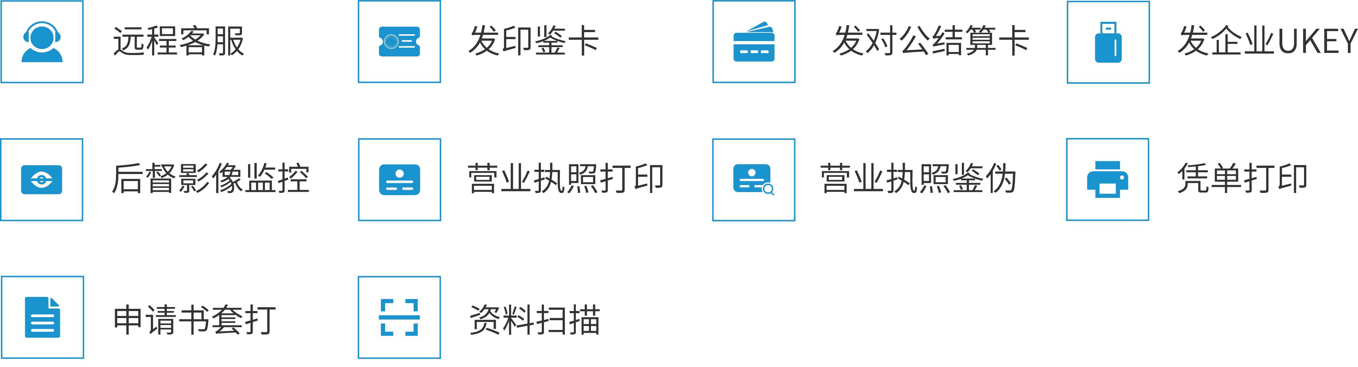 客户仅需到网点一次,就可以实现营业执照打印、账户开立、结算产品领取、资料扫描、开户资料鉴伪核查、预留印鉴卡等一站式开户业务办理。