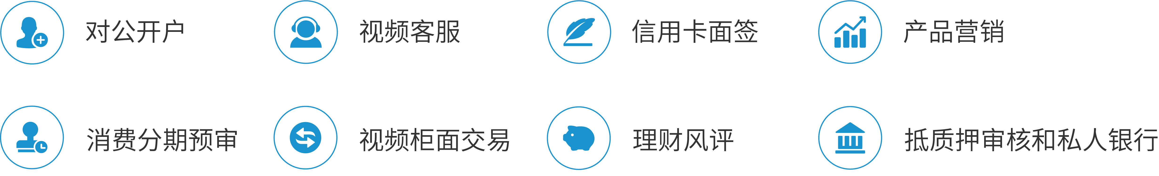 依托视频技术、AI技术、5G技术等,将银行与客户无缝连接起来。 为银行搭建一个先进的、开放的远程视频业务处理及咨询服务平台,把远程业务处理能力极限融入到银行前端业务场景中。 降低运营成本,提高处理效率,提升银行整体的金融服务和营销体验。